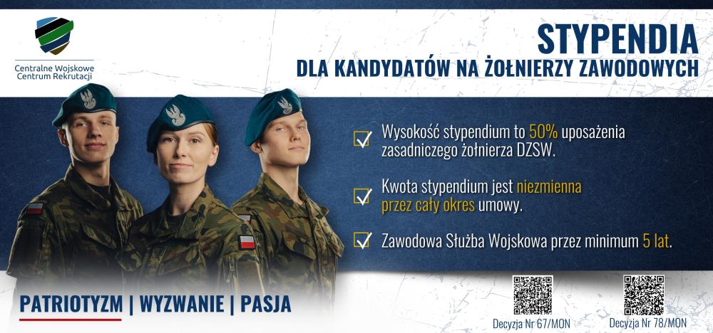 Program Stypendiów adresowany jest do osób zainteresowanych powołaniem do zawodowej służby wojskowej, zwanych dalej „kandydatami”, którzy rozpoczną w danym roku akademickim naukę na jednolitych studiach magisterskich lub studiach pierwszego stopnia oraz bezpośrednio po ich ukończeniu będą kontynuować kształcenie na tym kierunku w ramach studiów drugiego stopnia i po ich ukończeniu w czasie zgodnym z programem studiów uzyskają tytuł magistra, magistra inżyniera albo równorzędny. Wysokość stypendium wynosi 50 % kwoty uposażenia zasadniczego żołnierza odbywającego dobrowolną zasadniczą służbę wojskową obowiązującego w dniu zawarcia umowy.
